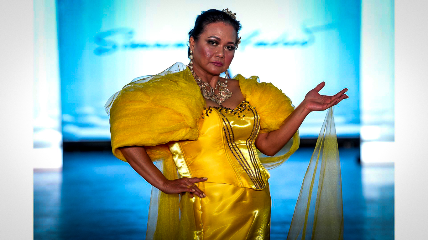 Before fashion, Simoun was an HR supervisor and laundry shop owner in Pasig City. But his heart always leaned toward design. Mentored by his godmother, Ramily Santillan, a seasoned seamstress from Bacolod, Simoun learned the fundamentals of garment-making. His first breakthrough came when he designed a pageant gown for his sister—an experience that sparked a deeper calling.